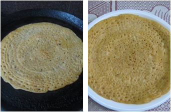 - Heat a griddle with oil, when hot pour a ladle of batter over the griddle and spread it carefully with back of the ladle.