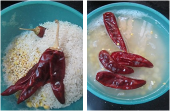 - Wash and mix rice, dals together and soak in water for 3 hours, once done grind them into a coarse paste by adding enough water.