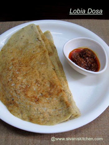 Heat a tawa, once hot sprinkle little water on tawa and wipe with a kitchen cloth, then pour a ladle full of dosa batter in the centre and spread the batter with back of the ladle. Drizzle some oil around the edge and on top of the dosa and cook till light brown color, then flip and cook the other side for a few secs. Now Lobia Dosa/Alasandalu Dosa is ready, once done remove to a plate and serve hot with pickle or powder.