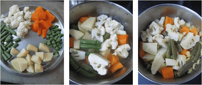 Wash toor dal well, pressure cook toor dal along with chopped vegetables, once done remove from the heat and set aside to cool down completely. After that open the lid and remove the dal bowl from the cooker.