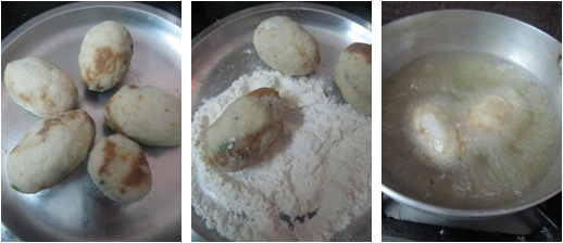 - In a mixing bowl add above all ingredients and mix together(except bread,oil), then make small balls and keep them aside.