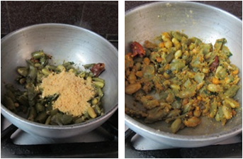 - Now add in ground powder and mix well, cook for a couple of mins on low flame, when done turn off the flame and transfer into a serving bowl, now broad beans dalia powder curry is ready to serve, serve hot with rice or roti.