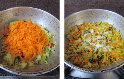 - When it half done add grated carrot and mix well, then add enough salt and cook until done.