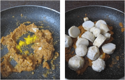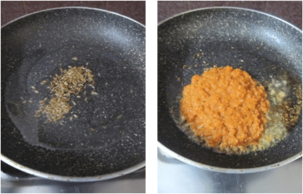 - Heat oil in a pan add cumin seeds and fry for 30 secs. Then add ground onion paste and fry.