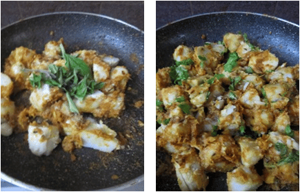 - Now add salt, curry leaves and mix it very well. Fry for a couple of mins on low to medium flame, after that turn off the flame