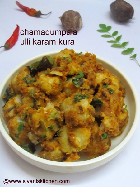 - Now Chamadumpala ulli karam kura is ready, garnish with coriander leaves and serve with hot rice along with sambar or rasam.