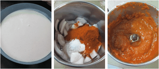 - Combine and grind above chutney ingredients into a smooth paste with little water and keep aside.