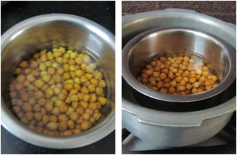 - Wash and soak dried black chickpeas overnight and then pressure cook the soaked black chickpeas for 3 whistles.