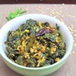 Once done add grated coconut, red chilli powder and mix everything well. Let it cook for a couple of mins without lid and transfer into a serving bowl. Now amaranth leaves moong dal curry/ponnaganti pesara curry is ready to serve.