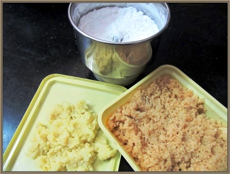 - Combine and blend sugar, elaichi pods into fine powder, now mix sugar powder, puri powder, sweet kohya and mix very well.