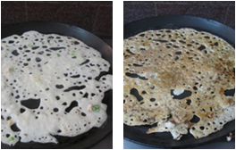 - Repeat the procedure for the next dosa, by mixing the batter well and prepare dosas.