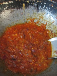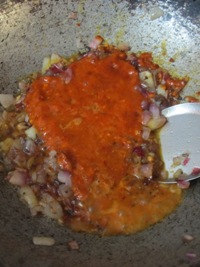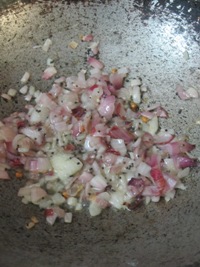 - Heat oil in a pan add popu ingredients and fry, once done add chopped onions and stir-fry for a while. Then add ground chutney and mix well.