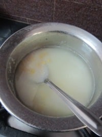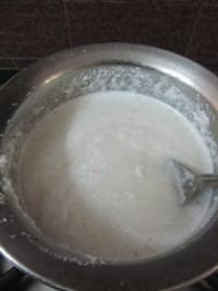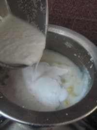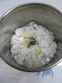 - Meanwhile, grind grated coconut, 3 cashew nuts along with little milk into a fine paste.