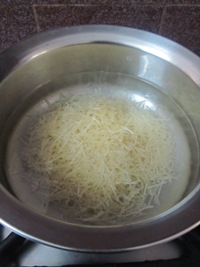 - In a bowl add 3 cups of water, little salt, 1 sp oil and allow it to boil, when it start boiling add the vermicelli and cook for 3 to 4 mins.