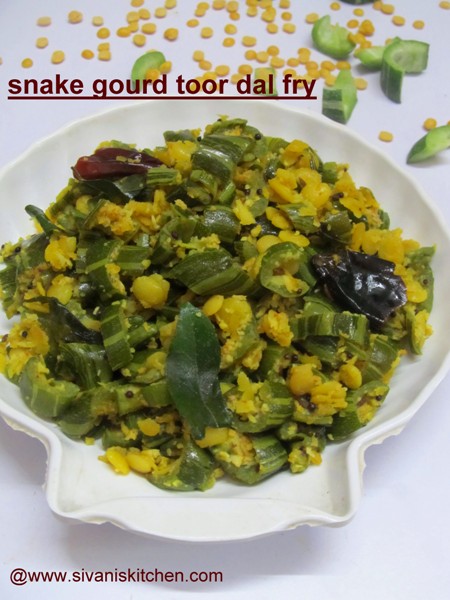 Potlakaya Kandipappu Podi Kura / Snake Gourd Toor Dal Fry