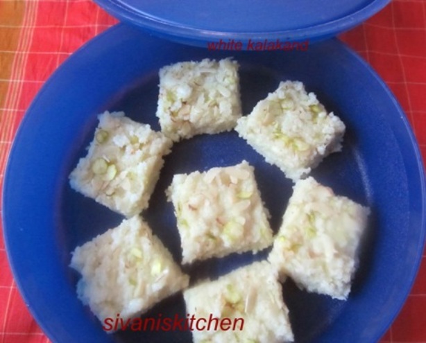 - Cut into squares and store in the fridge until ready to serve. Now white kalakand is ready to eat.